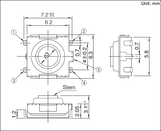5.操作寿命(5mA 5V DC):50,000 cycles