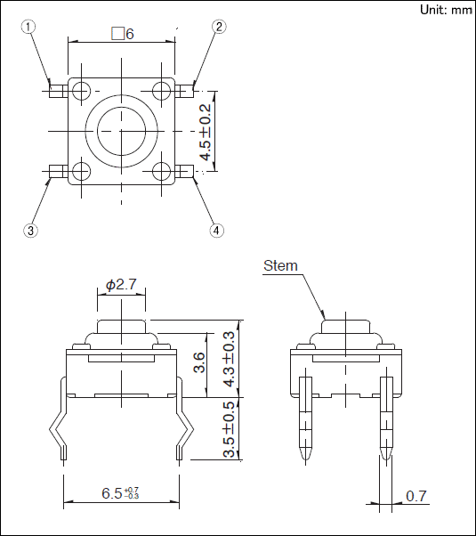 5.操作寿命(5mA 5V DC):1,000,000 cycles