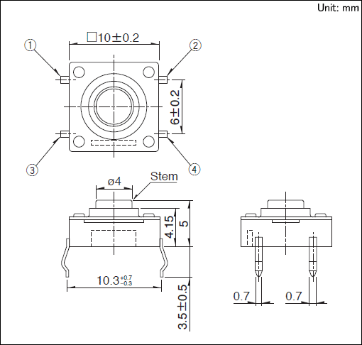 5.操作寿命(5mA 5V DC):100,000 cycles