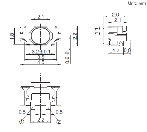 5.操作寿命(5mA 5V DC):600,000 cycles