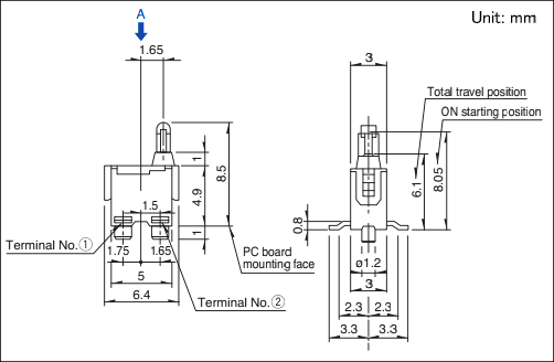 SPPB530601 产品技术参数 1.电路数:1 2.接点数:1 3.动作力:0.35N max. 4.无负载寿命:50,000 cycles 5.最小订货单位(pcs.):2,000