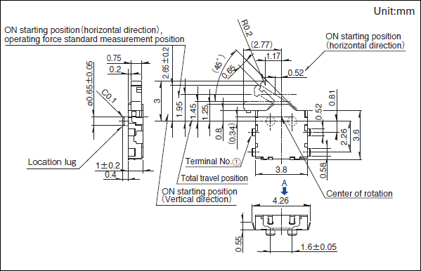 SPVN210106产品技术参数 1.电路数:1 2.接点数:1 3.端子形状:For PC board (Reflow) 4.动作力:0.35N max. 5.扳手的长度:Standard 6.操作方向:Left 7.定位销:有 8.最小订货单位(pcs.):5,000