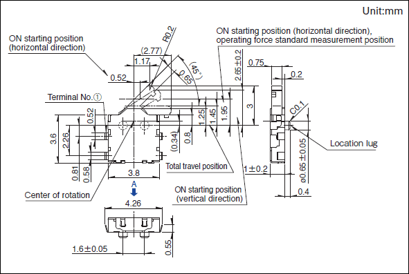 1.电路数:1 2.接点数:1 3.端子形状:For PC board (Reflow) 4.动作力:0.35N max. 5.扳手的长度:Standard 6.操作方向:Right 7.定位销:有 8.最小订货单位(pcs.):5,000