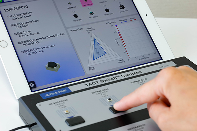 阿尔卑斯阿尔派在积累创造触感技术的同时,还与大学合作开展工程学研究探索和实证实验。由人触摸操作的TACT Switch™ 是实实在在体现感性的设备,它的按压触感甚至直接影响到产品和企业的形象。今后我们将继续创造符合客户要求的触感,推进成为品牌形象支柱的产品的开发工作。