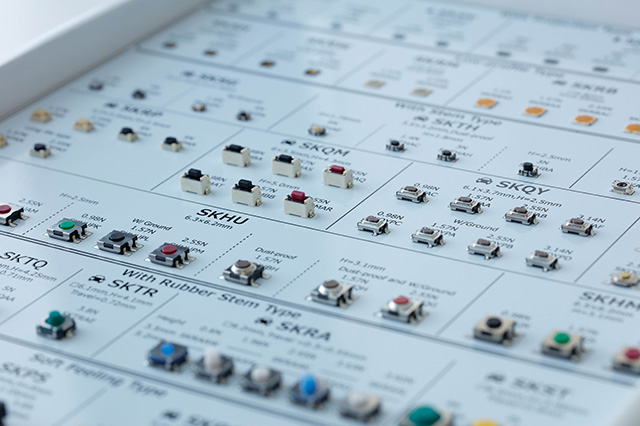 阿尔卑斯阿尔派的TACT Switch™ 拥有1,000多种款式,客户可根据需求选择规格标准。此外,如果客户要求现有产品尚不具备的新型按压触感,我们也能在了解您所期待的特性(触感和声音)/寿命(耐久性)/尺寸的基础上进行全新设计。