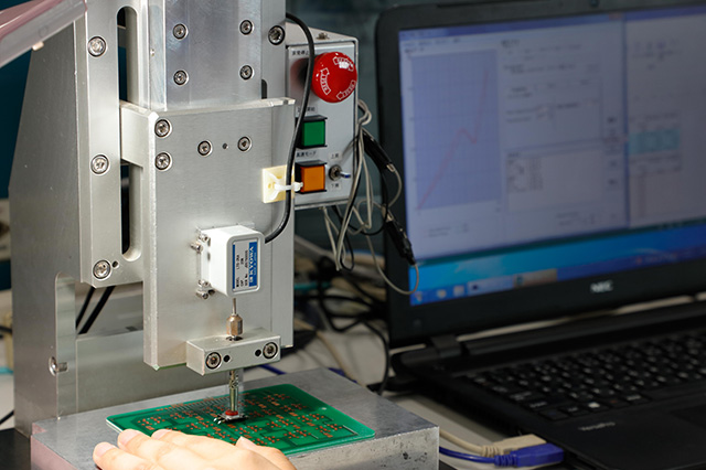 特性是最为重要的要素,可以用“F-S曲线”来表示。纵坐标表示受力,横坐标表示移动量,由此可以确定开关的操作力、恢复力、点击率等条件决定了开关的触感。此外,为了实现客户要求的按压触感,我们运用材料加工技术、模具精密加工技术、模拟技术以及触感检测仪等设备进行严格测试。凭借压倒性的产品款式优势和将触感化为实物的设计开发能力,为客户提供最佳产品。